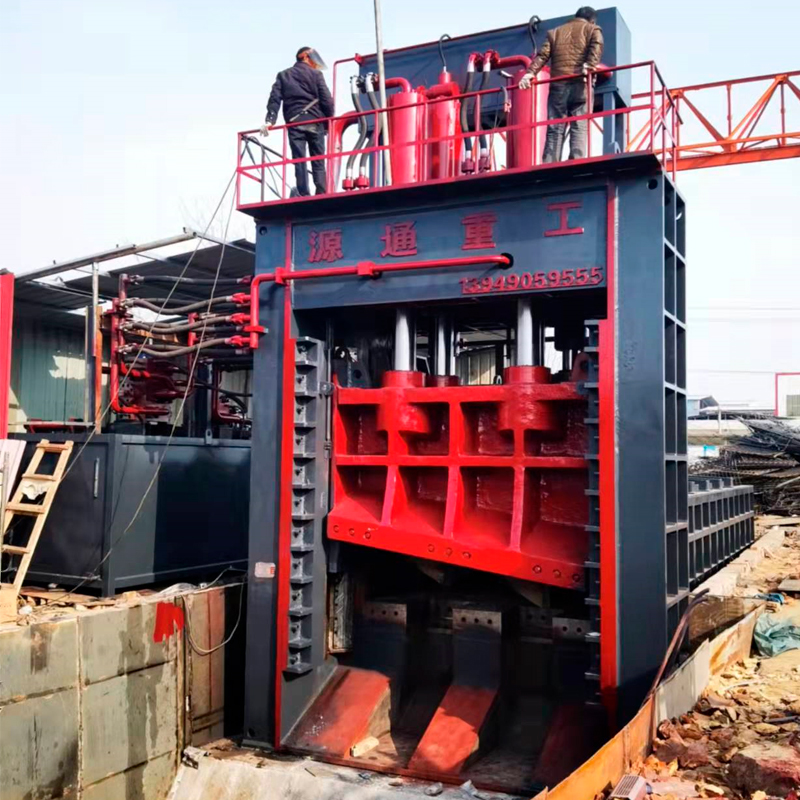 多刀液壓廢鋼剪切機適用用于金屬回收加工廠,報廢汽車拆解場,冶煉鑄造行業等, 對各種形狀的型鋼及各種金屬結構件進行冷態剪斷,加工成合格爐料。我們公司專利產品 多刀液壓龍門剪可以根據用戶的實際需求和要求,有針對性的去單獨設計一套專屬的液壓剪切機設備,常用型號:400、500、630、800、1000、1250噸多刀剪切機、可以一刀三段、 一刀五段,更好的提高使用效率。多刀片(多頭)設計,剪切塊度小精準度高整齊統一,避免二次剪切。源通重工多刀龍門剪采用推料箱送料,料箱尺寸大,處理料型種類多,且安裝有耐磨層經久耐用。 系統采用德國西門子、日本三菱、法國施耐德等知名品牌,工作過程現實自動花化、安全可靠。人機交互界面,可視化剪切過程監控,操作簡便,省工省時。具有遙控操作遠程協助和故障診斷功能,使用靈活方便。工作效率高,安全性高、且大大低勞動強度和人 工成本。