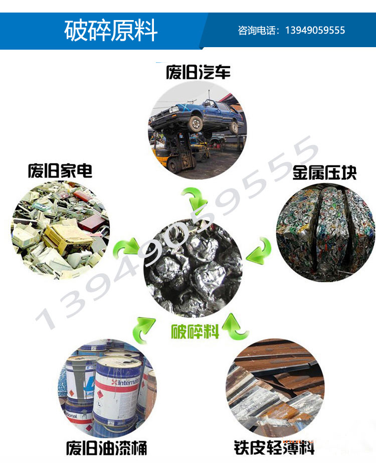 源通機械廢舊金屬破碎機參數: